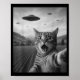 Poster Funny Surprised Ed Cat Selfie With Alien Ufo Cat U
