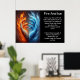 Uma fusão de fogo e gelo é representada nesta representação artística de duas mãos alcançando. A mão azul gelada, girando com gelo e gelo, simboliza frio e clareza. A feroz mão laranja e vermelha, girando com chamas e fumaça, simboliza calor e paixão. O fundo é uma mistura gradiente de tons escuros e enfumaçados, destacando o contraste. Os efeitos da luz enfatizam o tema elementar. "Fogo e Gelo" está no topo em uma tipografia ousada e moderna.