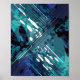 Um trabalho de arte abstrato digital que combina tons de azul, lacre e marinho com placas de preto e branco. Linhas paralelas diagonais intersetam no centro, sobrepostas com manchas irregulares em forma de tinta e padrões quadrados sutis. A composição evoca uma fusão de precisão geométrica e camuflagem inspirada no oceano, criando um sentido de profundidade e movimento dinâmico.