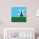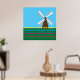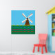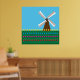 Um moinho de vento entre flores amarelas vermelhas e cor-de-rosa das tulipas. Esta design parece realmente eficaz nestes Poster
