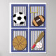 Nosso conjunto giro de quatro impressões esportivos pode ser cortado em quatro impressões separadas 5x7 e enquadrado ou você pode deixar como um grande impressão. Estas bonitas impressões de arte de muro esportivo serão um excelente adicional a qualquer berçário, sala de brincadeira ou quarto de esporte!