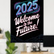 Abrace o olhar cósmico visionário com este poster com tema futurista com o brilhante texto '2025' e um pano de fundo estrelado sereno. É uma mistura atraente de matizes de neon e de arte de ponta.
