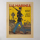 Um poster de recrutamento de fuzileiros navais dos EUA da Primeira Guerra Mundial mostrando um fuzileiro que patrulha docas.