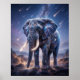 A monumental galactic elephant stands beneath a sky filled with falling stars, its massive form composed of glowing nebula textures, cosmic dust, and scattered constellations. Subtle light radiates through its body, emphasizing strength, wisdom, and ancient presence. The vast cosmic landscape and meteor-lit sky create a powerful and awe-inspiring scene. This artwork embodies resilience and quiet power, making it an ideal centerpiece for bold interiors, modern decor, and collectors of majestic, symbolic wall art.