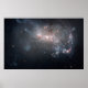 No dia 4 de julho, fogos de artifício assombram os céus das cidades americanas nas comemorações anuais do Dia da Independência. Mas a cerca de 12,5 milhões de anos-luz de distância na galáxia anã NGC 4449 "fogos de artifício" estelares estão a disparar o tempo todo. Centenas de milhares de estrelas vibrantes, azuis e vermelhas, brilham nesta imagem tirada pelo Telescópio Espacial Hubble da NASA. Os aglomerados brancos-azuis-quentes de estrelas massivas estão espalhados pela galáxia, intercalados com numerosas regiões mais sujas e avermelhadas da atual formação de estrelas. Maciças nuvens escuras de gás e poeira são silenciadas contra a luz estelar. A NGC 4449 está formando estrelas há vários bilhões de anos, mas atualmente está vivenciando um evento de formação de estrelas a uma taxa muito mais alto do que no passado. Esta atividade invulgarmente explosiva e intensa de formação de estrelas se qualifica como uma explosão de estrelas. No ritmo atual, o fornecimento de gás que alimenta a produção estelar duraria apenas mais um bilhão de anos. As rajadas de estrelas ocorrem normalmente nas regiões centrais das galáxias, mas a NGC 4449 tem uma atividade de formação estelar mais difundida, já que as estrelas mais jovens são observadas tanto no núcleo quanto nos riachos que rodeiam a galáxia. Uma explosão estelar "global" como a NGC 4449 assemelha-se a galáxias primordiais que formam estrelas, que cresceram se fundindo e aumentando sistemas estelares menores. Como a NGC 4449 está próxima o suficiente para ser observada em detalhes excelentes, é o laboratório ideal para investigar o que pode ter ocorrido durante a formação e evolução galácticas no universo inicial. É provável que a explosão estelar generalizada atual tenha sido desencadeada pela interação ou fusão com um companheiro menor. NGC 4449 pertence a um grupo de galáxias da constelação Canes Venatici. Os astrônomos acham que a formação de estrelas da NGC 449 foi influenciada por interações com vários de seus vizinhos. Essa imagem foi tirada em novembro de 2005 por uma equipe científica internacional liderada por Alessandra Aloisi, do Instituto de Ciência do Telescópio Espacial (STScI) em Baltimore e pela Agência Espacial Europeia (ESA). Outros membros da equipe incluem Francesca Annibali (STScI), Claus Leitherer (STScI), Jennifer Mack (STScI), Marco Sirianni (STScI/ESA), Monica Tosi (INAF-OAB) e Roeland van der Marel (STScI). A Câmera Avançada para Pesquisas da Hubble observou a NGC 4449 em luz azul, visível, infravermelha e H-alfa.