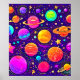 Uma mistura fascinante de cores neon suaves e etéreas pinta uma galáxia caprichosa de desenho animado com planetas e estrelas (Este Design Feito Com IA). Faça o Pedido Hoje e Abrace a Alegria de Comprar!