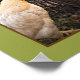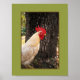 Este poster apresenta um galo branco Rhode Island, sendo curioso perto de um tronco de árvore. Bordas castanho e verde-oliva completam o olhar. Personalizar este item ou comprar conforme projetado. imagem de estoque www.freepik.com