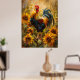 Acenda qualquer espaço com nosso Poster de pintura de óleo de rooster e girassóis. Este trabalho de arte vibrante e detalhado apresenta um galo orgulhoso em meio a um ensolarado florescimento, trazendo encanto rústico e cores vivas para sua casa. Perfeito por adicionar um toque de elegância no campo à sua decoração.