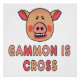 Gammon Is Cross mostra um porco rechando, chorando e corando com raiva e frustração com as palavras "Gammon Is Cross" embaixo. Humor com um ponto.