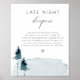 Esta placa de chá de fraldas de final da noite apresenta ardente ardósia azul de palheiro de inverno e impermeabilização e fontes manuscritas. É o sinal de chá de fraldas perfeito para seu chá de fraldas boho, rústico, montanhoso ou florestal.