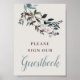 Adicione os detalhes finais às decorações do seu dia com este sinal que diz "por favor, assine nosso livro de presentes". Ficaria ótimo emoldurado ao lado do seu livro de presentes de casamento e certifique-se de verificar o livro de presentes correspondente oferecido nesta coleção. Este design combina com a nossa coleção de casamento "Garden Crest" em Eggshell.