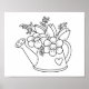 A rega do jardim pode cheio de flores: margaridas, tulipas e hálito de bebê. A lata de água tem um pequeno coração pintado no fundo. Feita para uma coloração fácil.