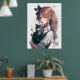 Poster Garota Animadora Segurando Seu Retrato De Aquarela
