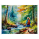 Esta é uma imagem de aquarela de uma menina caminhando perto de um riacho em uma floresta. Ele tem cores lindas e pareceria um excelente em uma mesa ou em qualquer lugar que você quiser. Só de olhar para ele me ajuda a me sentir mais à vontade.