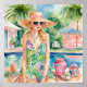 Poster Garota de Palma de Pílula de Aquarela na Piscina