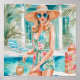 Poster Garota de Palma de Pílula de Aquarela na Piscina