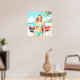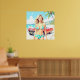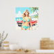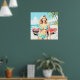Poster Garota na praia com um carro clássico