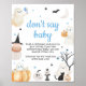 Torne o seu evento especial com este Chá de fraldas de Halloween com a nossa bela e adorável impressão Don't Say Baby Sign apresentando um tema de Chá de fraldas de Halloween adorável. Baixe, personalize e crie memórias duradouras com este toque perfeito para sua celebração alegre! BS936