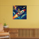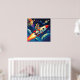Poster Garoto pequeno em um navio foguete voando pelo esp