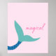 Apresentando minha ilustração de cauda de sereia nesta poster com a palavra mágica. Azul, lacado, rosa, elegante chic e moderno. Perfeito para a garotinha especial da sua vida que acredita em maravilha e magia. Minhas filhas amaram a beleza das sereias e o mistério que as cercava, eu queria criar uma design que fosse igual ao seu quarto.