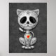 Esta adorável design de gatinha de cinza é decorada com espirais e padrões de pontos. Pedais pequenos de flores circulam os olhos negros puros na tradição do Dia dos Pelos de açúcar Mortos. O gato está sentado, olhando para frente com sua cauda acenando ao fundo. A cabeça grande se senta sobre um corpo minúsculo que cria uma aparência divertida, como um desenho. Uma estrela de cinco pontos fica no meio da testa do gatinho enquanto um coração vermelho e amarelo brilhante aparece no centro do peito. Este gatinho bonito é um design divertido e na moda inspirado pelas belas padrões do Dia dos Pelos Crânios do Açúcar Morto.