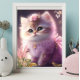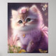 Poster Gatinho Fofinho de Gata em Vestido Roxo Arte Flora