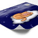 Gatinho adormecido bonito na nuvem estrelando o céu...poster/impressão para mostrar nas crianças da sala