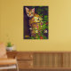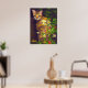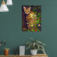 Poster em uma ilustração de um lindo gato Abissínia em um jardim noturno, com flores florescentes noturnas