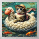 Um gato engraçado caminha sobre um flutuador inflável de ovelhas enquanto explora o rio como natação de peixe por baixo da arte gerada por IA