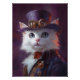 Uma bela ilustração com um gato branco vestido com uma roupa inspirada em um galão, incluindo um chapéu e óculos de cima, exuberando charme e criatividade.