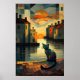 Poster Gato Cubista: Sunset em Águas Venezianas
