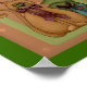 Moldura verde, burgundy e fundo de pontos com gato ilustrado primitivo folk num arco de fita estacionária burgundy com Papais noeis sobrevoando e Enfeites de natal vermelhos pendurados na armação. Cartões e presentes exclusivos decorativos com um gatinho. Ilustrações de Trina Clark. Design por Deborah Miller.