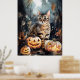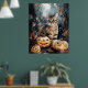 Poster Gato de Halloween Bengal com Pumpkins assustado