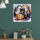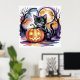 Poster Gato de Halloween Negro com Jack-O-Lanterna, Gato