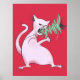 Engraçado poster de Natal com uma ilustração digital hilária de um gato gordo branco-mau comendo uma árvore de Natal sobre fundo vermelho vibrante. Sabe o que acontece no Natal todo solteiro ano. Os gatos adoram estragar a decoração de férias.