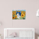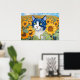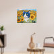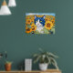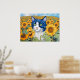 Poster Gato de Olhos Azuis de Aquarela em Girassóis