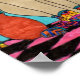 Essa deusa de gato real se senta sobre um chão barato rosa e preto sobre um fundo aqua, cercado por plantas exóticas em forma de fã em vasos terra cotta. As marcas coloridas e altamente detalhadas nas pernas, peito, testa e cauda dela superaram sua linhagem real. A cena inteira está cercada por uma fronteira muito detalhada que corresponde aos padrões em seu pelo.
