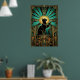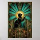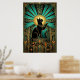Poster Gato do Trono Esmeralda Art Deco com Auréola Esmer