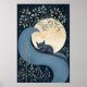 Poster Gato fofo dormindo sob a Lua e as Estrelas.