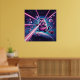 Gato gigante engraçado atira lasers em dinossauros no espaço.