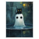 Pôster Gato Halloween e Fantasma na Piscina