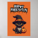 Poster Gato Negro Bonito Com Pumpkin Jack O Lanterna
