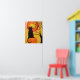Esta poster apresenta uma pintura de um gato preto sentado numa abóbora olhando para a lua de Halloween.