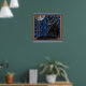 Poster Gato Negro Olhando para a Lua e as Estrelas