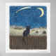 Pôster Gato numa cerca a olhar para o céu noturno acima d