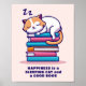 Este poster de parede personalizado e adorável é perfeito para decorar seu anzol de leitura onde você se enrola com um bom livro e um gatinho dormindo. (Não há nada melhor). O design é feito em tons brilhantes de rosa, azul e laranja, com um gatinho calico gravado em cima da pilha de livros, esnozando. O texto atual diz, "Felicidade é um Gato Dormindo e um Bom Livro." Você pode manter esse texto ou alterá-lo para si mesmo usando o campo modelo fácil. Estes posters fazem o presente perfeito para qualquer leitor, professor de inglês, escritor, bibliotecário ou worm orgulhoso.