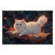 Um lindo, fofo e branco Gato Persa dá uma volta mágica no seu tapete favorito de proteção contra incêndios. Um retrato adorável para qualquer amante de gatos desfrutar.