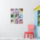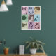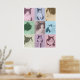 Um pôster pop art personalizado com 9 fotos pronto para você carregar com suas fotos favoritas de seu gato ou cachorro. Uma sobreposição de blocos de cores transparentes e coloridos em tons pastéis de rosa, azul, amarelo, verde e roxo. Arte original ©Marisu Valencia