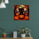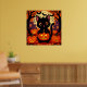 Poster Gato Preto Bonito com Pumpkins do Halloween