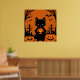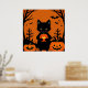 Poster Gato Preto Bonito com Pumpkins do Halloween